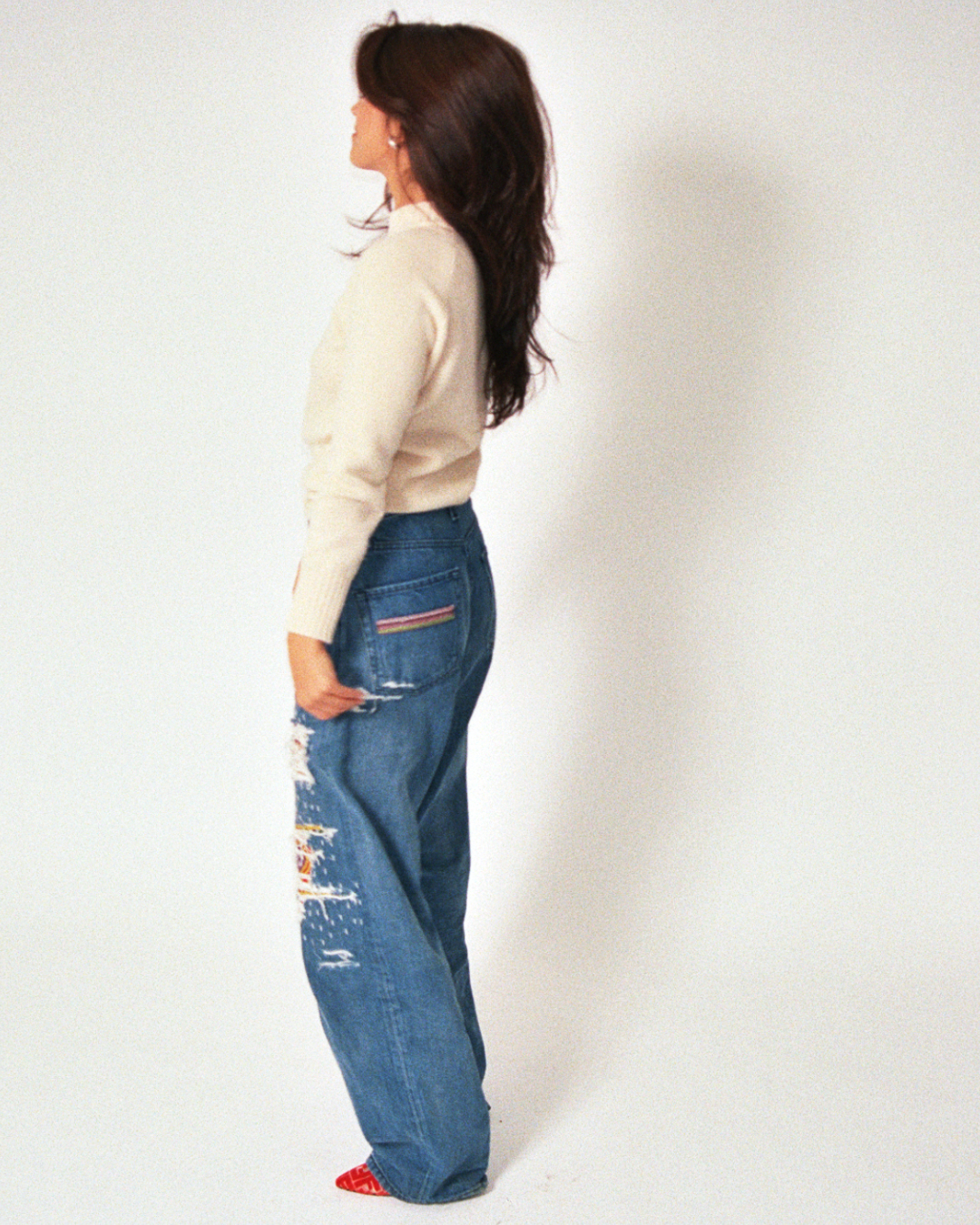 1. Turn your jeans inside out.